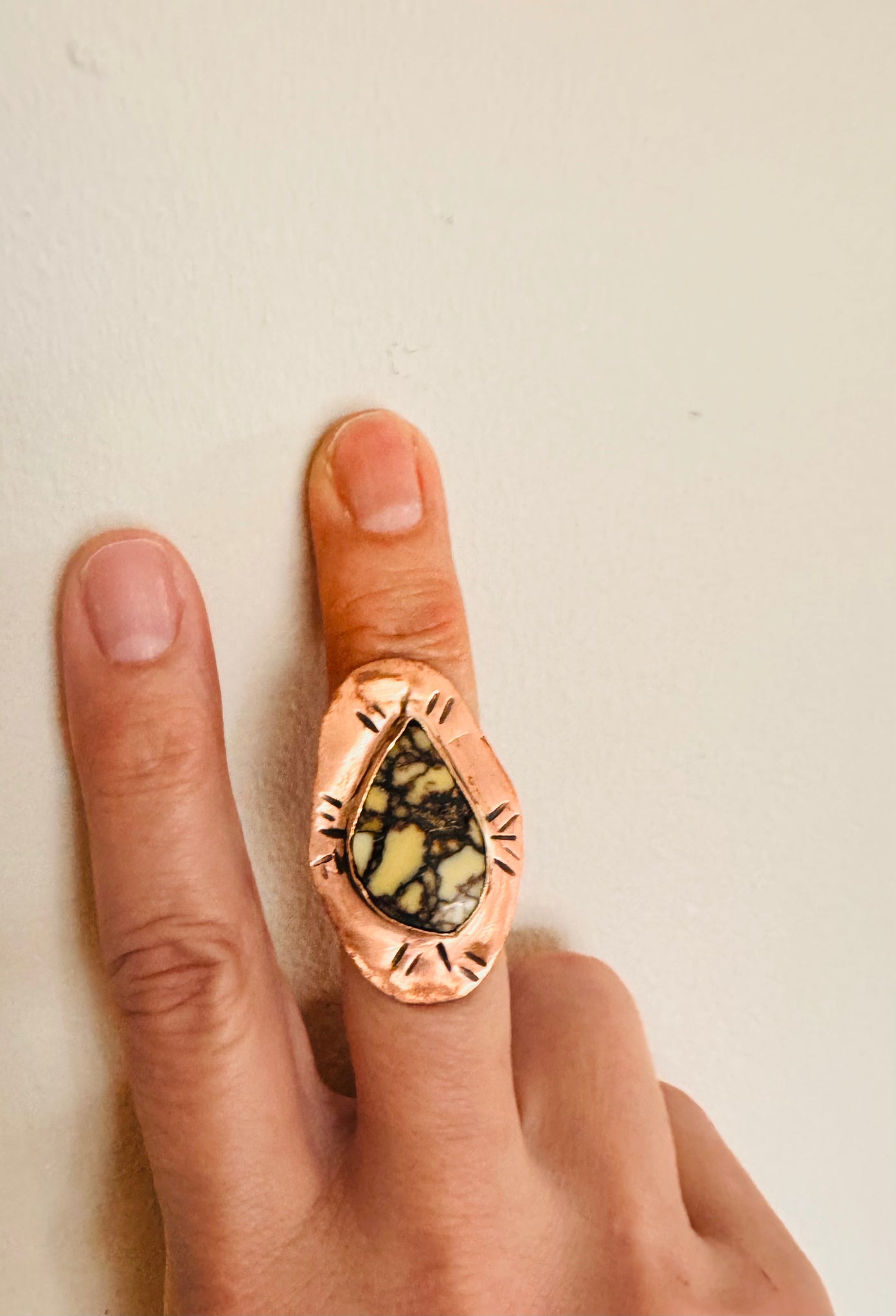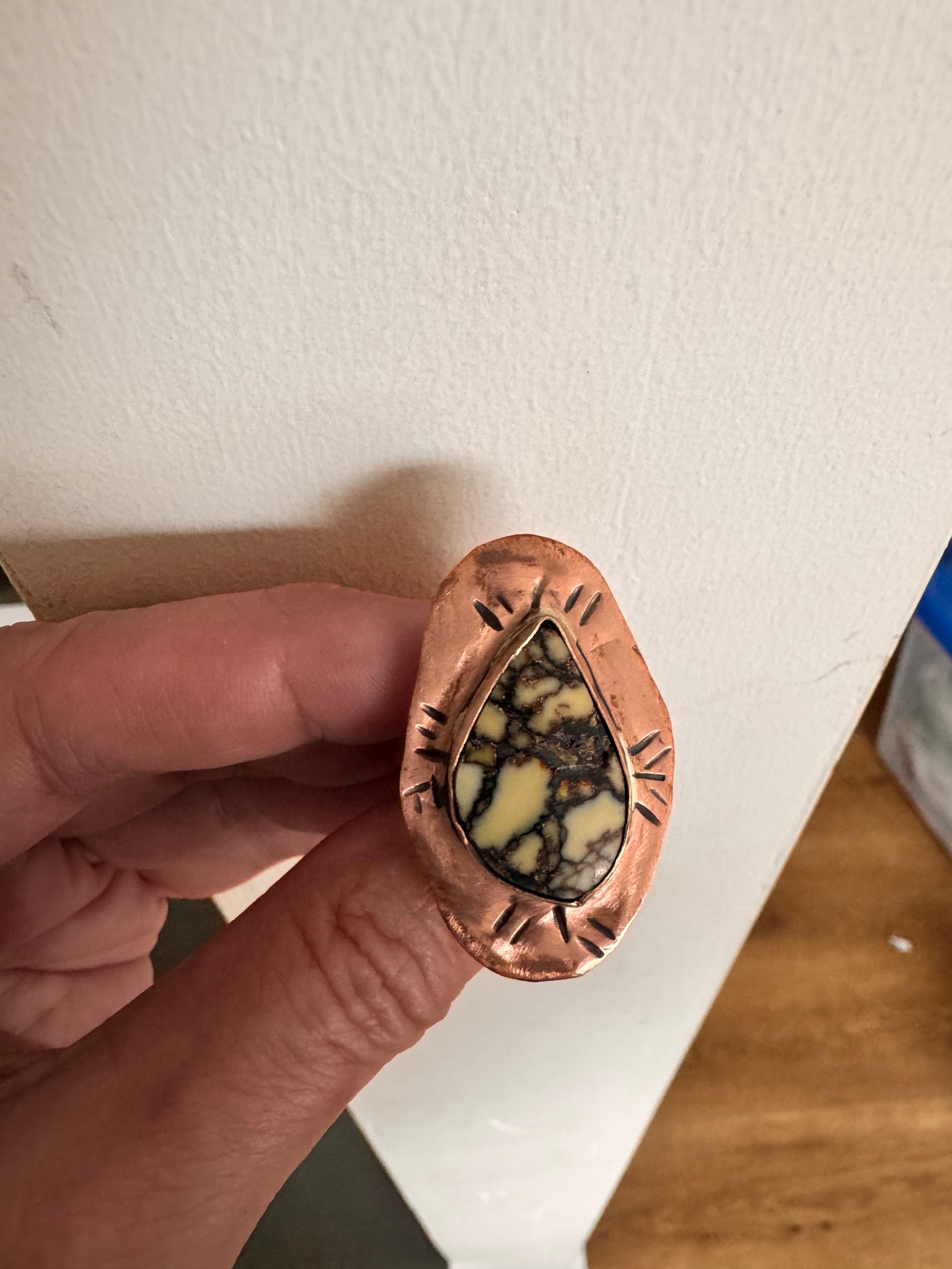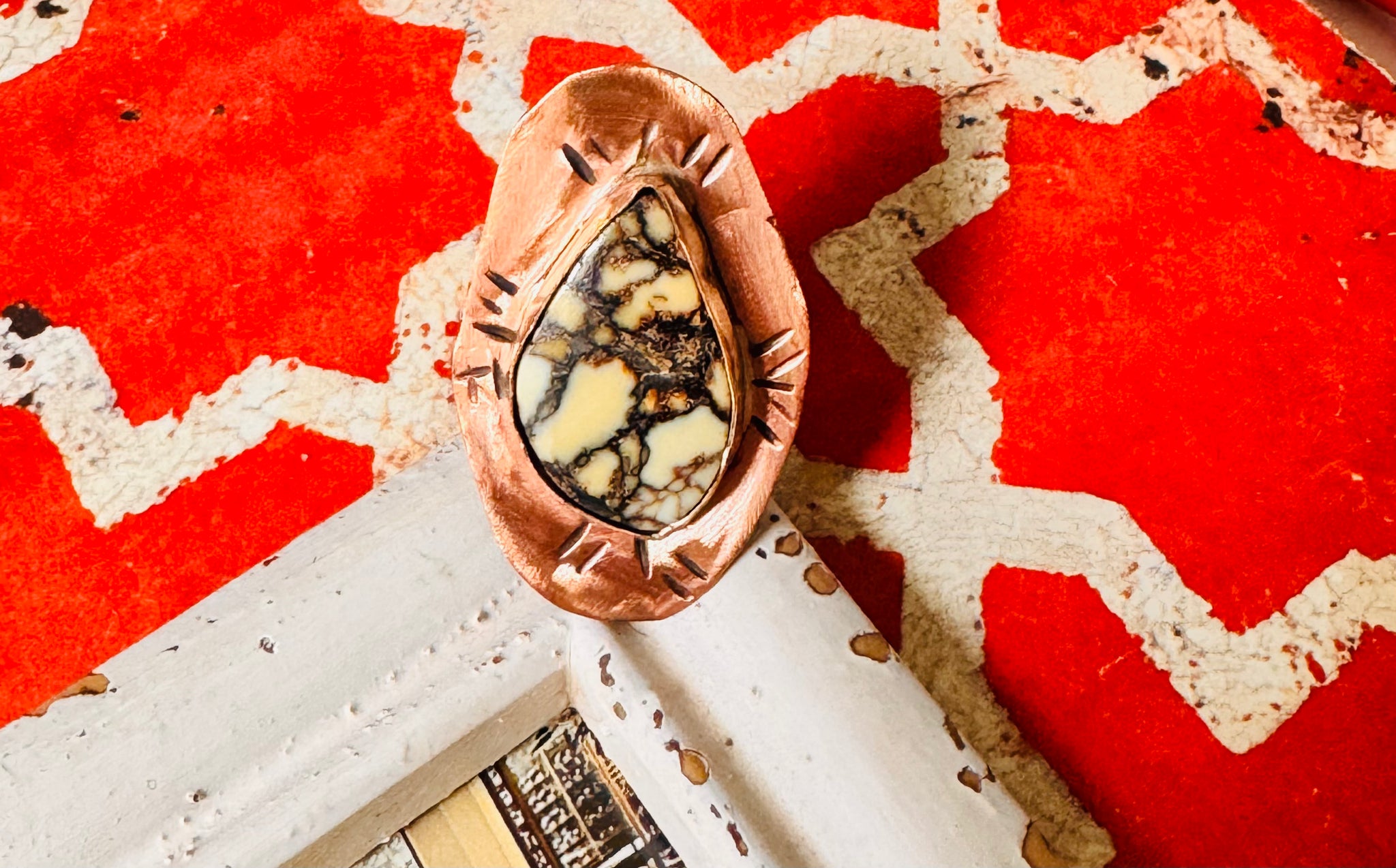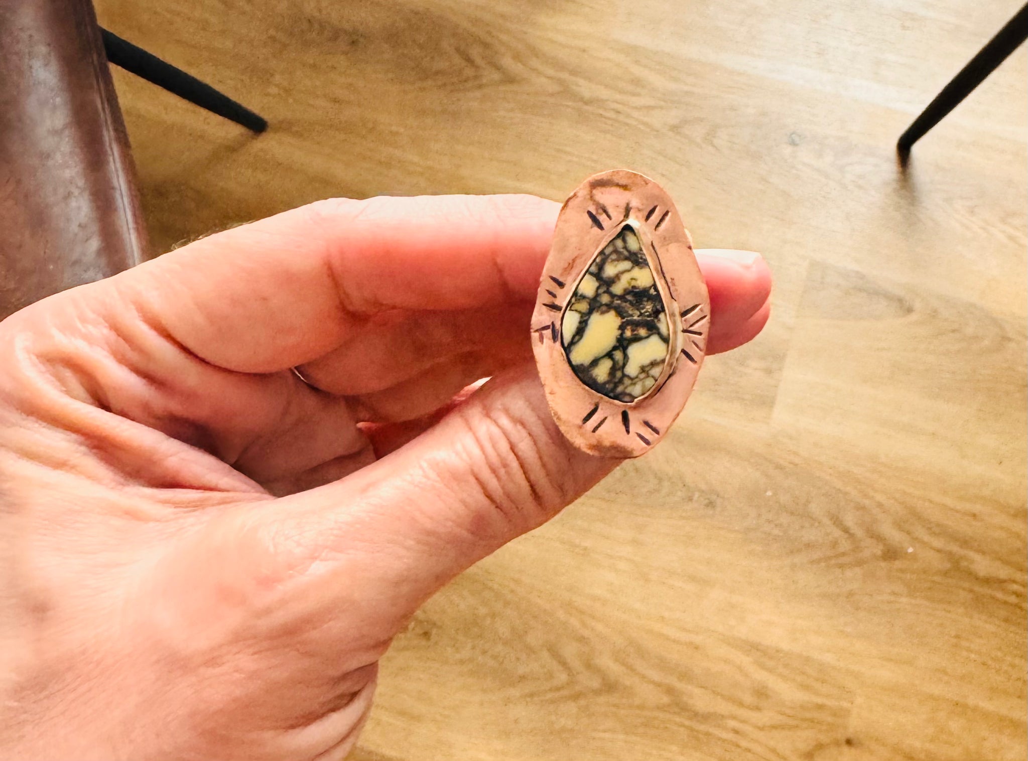 Metal: copper with a hand stamped design