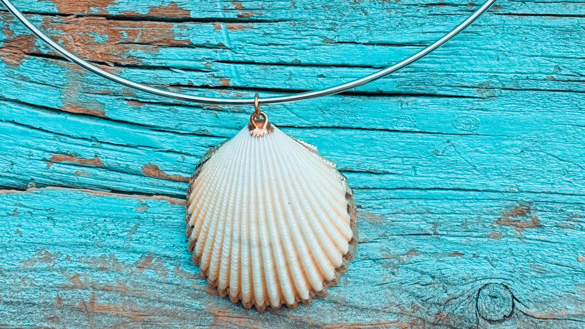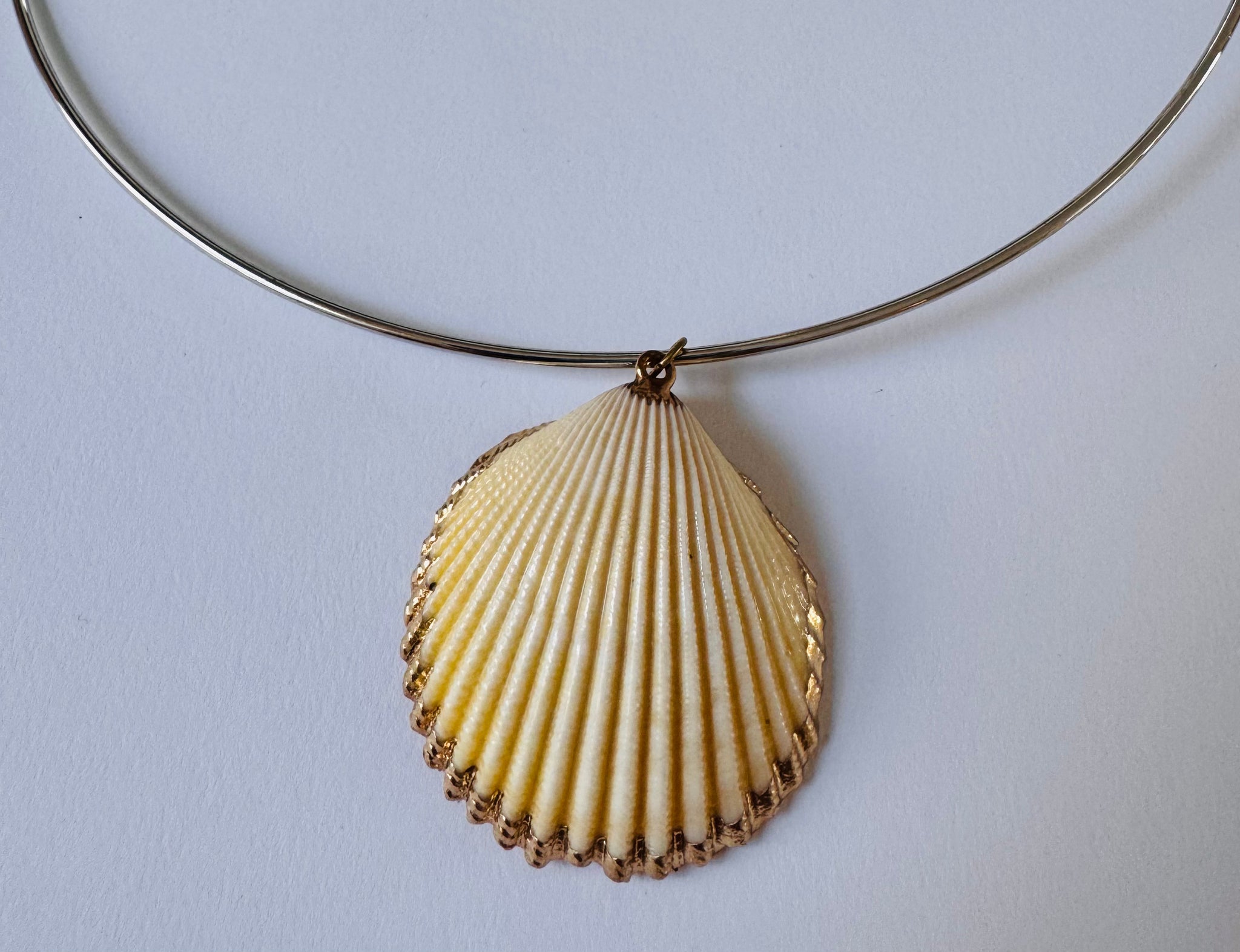 Stone: scallop shell with an edge of gold appliqué