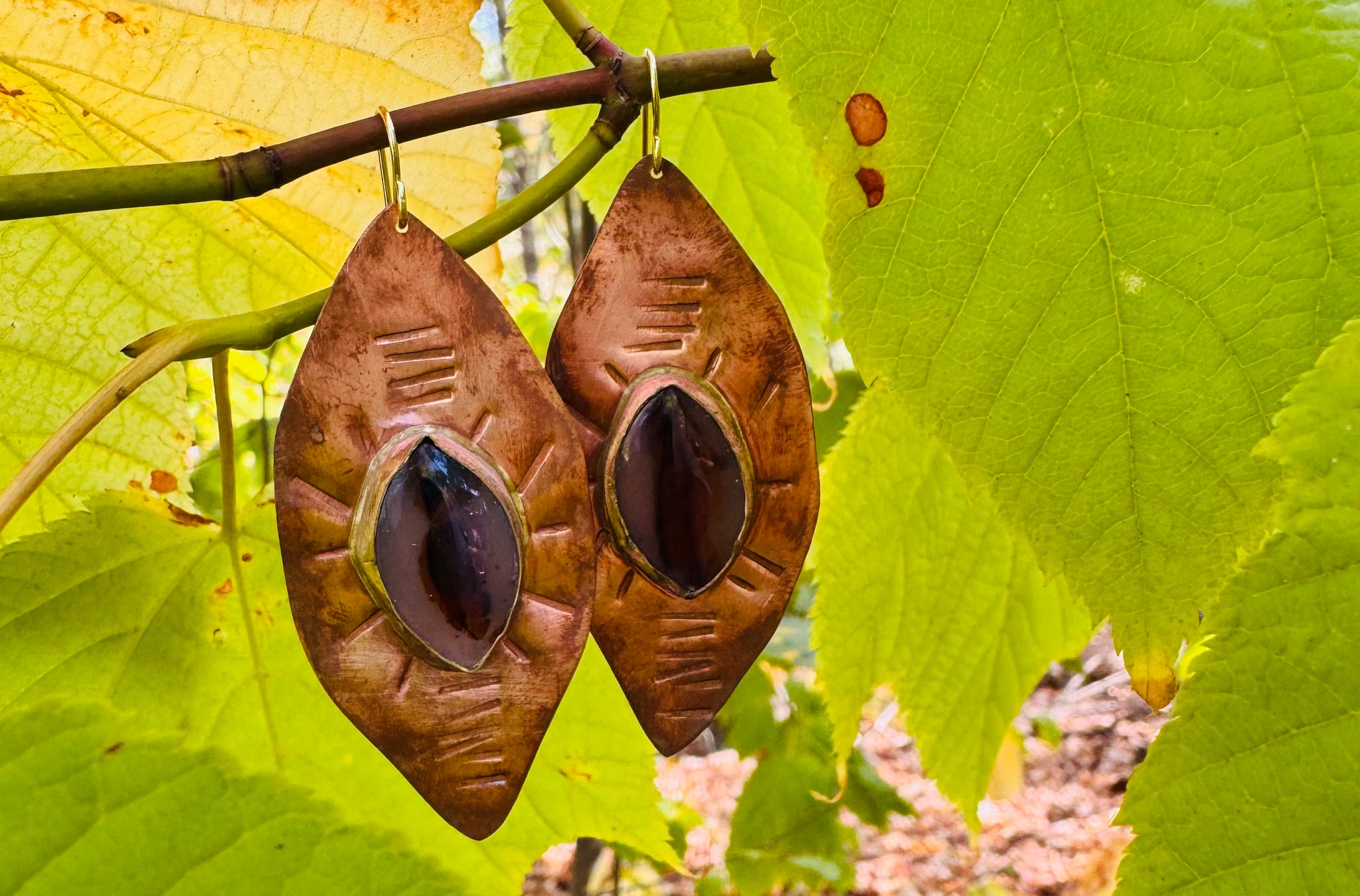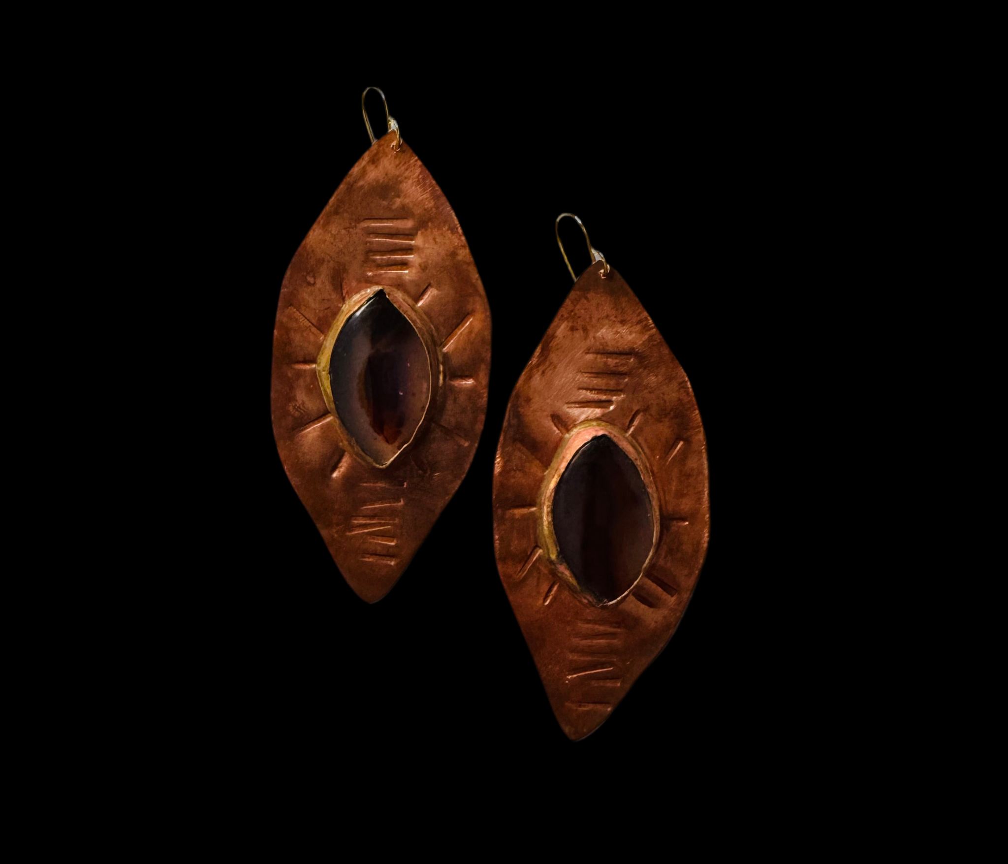 …beautiful Montana agate set into hand stamped/shaped copper…